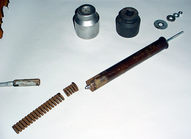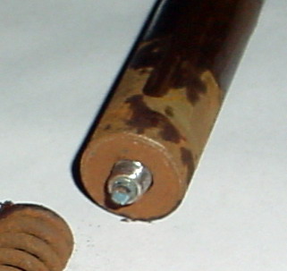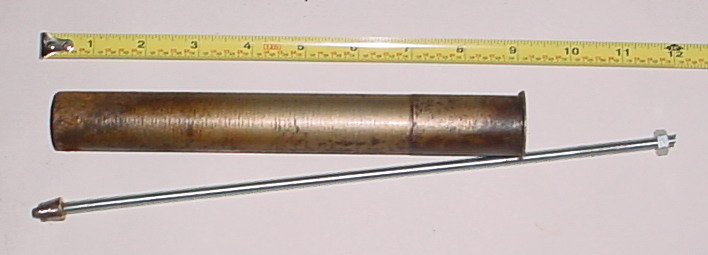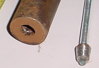 Cut threaded stock to at least 12-inch length. Note shoulder on tube; two inches and you should be free. Tube also is plated; probably nickel. |