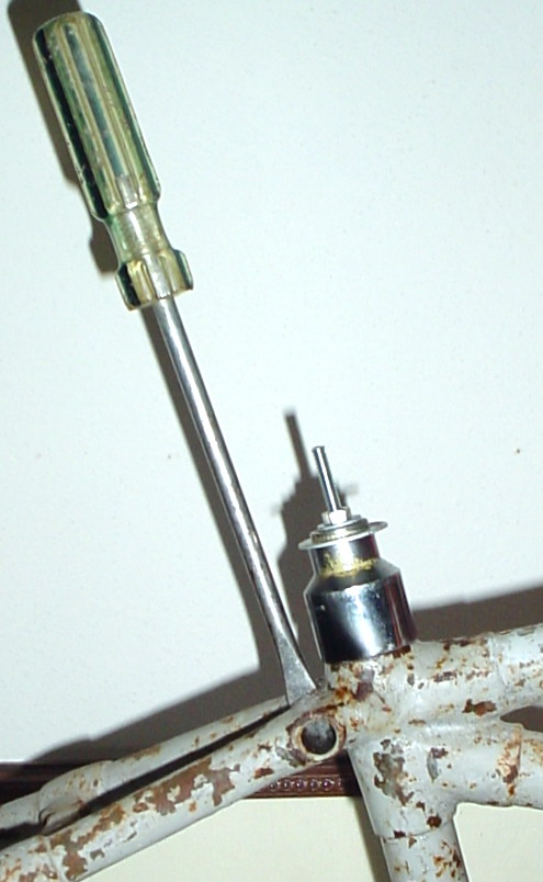 Rap on sides of seat tube with smaller hammer as tension is applied. Use lots of 3-in-1 oil or the like. |