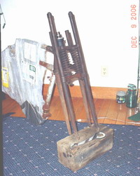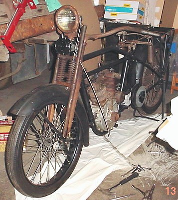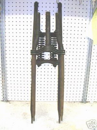 Frame with front forks.(hook wrench shown there on wood block) |