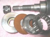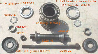 in Nov.2011. The rear hub uses flat roller bearings. If the races are worn, replacement/over-size bearings are available....+0.0002" I am working with a rear wheel that uses 16 roller bearings on each side. These measure 0.248" by 0.490". This would make them 2289-25 which cross over the the present day number of 9920 (0.250"). According to motorhead1 on the AMCA site, these are used on '58 and later big twins. Antique Cycle Supply shows them on page 90 available in many oversizes. |