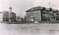 1889 date above door. Torn down about 1954. kids in middle kids at right |